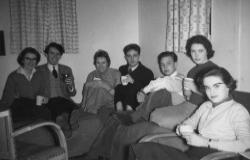 "Saul Sternberg came from Swarthmore and I think he was at Keele in 51-52. Bob Sanford, the son of Robert Nevitt Sanford, of The Authoritarian Personality fame was at Keele in 1951-52, while his father was at the Tavistock Clinic (having refused to take an oath of loyalty or allegiance or something during the McCarthy era.). There was a Roger Boyd who came from a college in Maine in about 1953-54 and a man from Birmingham, Alabama, called Ed, again in about 1953 or 1954.”