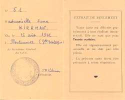 June Grocott (Kirkman) 1954 Photo: Joan Grocott's Carte d'Etudiant