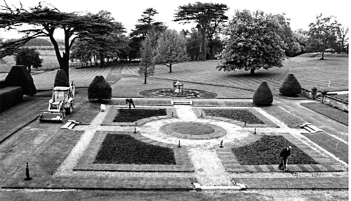 I remember the giant pink sheds from my time in 1980-1981. They were removed in 1985 when the area was renovated. The sheds were demolished and the Italian Gardens were re-planted according to the original eighteenth century plans which were found in the archives. The box hedges, fountain and other features have restored the glory robbed by those ghastly pink huts.... At a Heritage Open Day in 2009 one of the visitors was Bernard Lufford who said it had been his job to restore the Italian Gardens and he spoke lovingly of the effort that was involved. He was foreman gardener and he laid out and planted the Italian gardens. He served as a gardener for 35 years at Keele and finally retired in 1989. He is the middle man of the three being presented to Princess Margaret. Of course the Italian Gardens are now among the most attractive locations on campus. Photos with permission of The Sentinel."