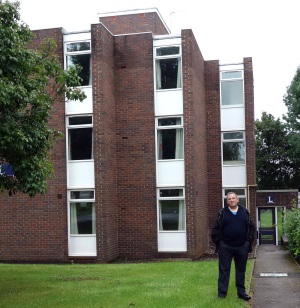 "I lodged at Hawthorns for my first year 1975-76. I have fond memories of trying to get to Foundation Year lectures in time. I continued my association with the Hall throughout my four years. Sad to see it go but all things change. I posted this of me outside "my" block (L) on a flying visit back in 2014. I was a rarity in having a car right from the start and could actually park it more or less next to the door!"