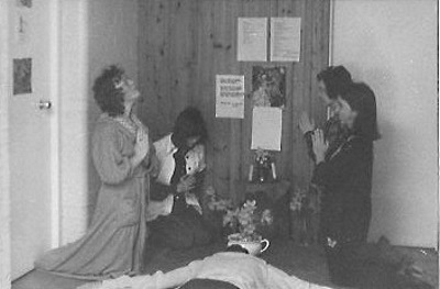 What to do with his money? Suddenly the Hall Council ceased to be just a talking-shop and became an instrument for fun. Let us have bigger and better Balls they decided. Many Balls had themes, such as Vicars and Tarts; oh how Thorns' students loved to dress-up! This was the age of The Rocky Horror Music Show and I saw more lingerie, and not just on the girls, at these balls than I had before or since. The Thorns Balls came to rival the Union's Balls for the quality of the bands and the cheapness of the tickets. There was even a black-market in Ball tickets. The better the bands, the louder the music and soon we started to get complaints from the village. What should we do about that? We decided to hold a Christmas party for the elderly of the village plus representatives of the village community such as the parish council, the shop keeper, the vicar and the publican. Carole Holder, with help, provided a buffet for over 100 people, the students devised and performed a cabaret, and I acted as Master of Ceremonies. The first part of the evening ended with a raffle, before were retired to the student bar for a disco. It was amazing what talents emerged. There was musical entertainment from our Music students; old-fashioned recitations; even a conjurer. The most memorable and certainly the best appreciated by the old men was a dance troupe made up of scantily dressed girls whose principal covering were costumes made out of black bin-liners. We also had imported acts, the best of which were the Globular Sisters. Imagine two portly bearded middle aged men dressed in dinner suits, sporting blonde wigs and heavily made-up singing songs from Noel Coward. The effect was hilarious. These parties proved a great success and complaints from the village ceased.
