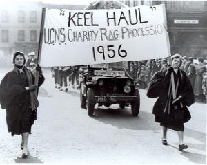Photo below: Red and gold (left) and red, black and gold (right) worn at the first RAG Procession 1956