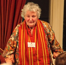 Photo above: Jill Porter (1955) sports her original tomato-and-egg scarf at the 2013 Golden Graduates reunion