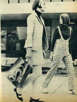 "During the late Sixties, every male student had to have a black leather jacket as part of their uniform. It must have been the chosen way to look cool even when thrown over a pair of grubby jeans which of course, we all wore then as now. Jeans were very often patched extensively to personalise them and kept going by this means until they completely disintegrated. My particular favourite outfit was a purple miniskirt worn with a skinny purple polo neck and matching purple tights. I wore this to one 9 o’clock FY lecture and everyone complained of sore eyes!"
