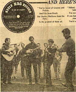 "Tony Hale was Keele’s very own ci-devant rockstar (a sort of Midlands Johnny Hallyday) and he was the lead singer with Rhythm Unlimited. Dick Barton was half of Keele Row. I have a copy of "Stan Matthews" on an album of Stoke City songs. Somebody very kindly gave me a copy of another CD called “Play Up Stoke” and there is a note on it which says they have been unable to trace the copyright holder for Stanley Matthews by Keel (sic) Row. This was originally on a Keele rag record in 1963 or 64 and Keele Row were Dick Barton and another person. Dick used to sing at the folk club. Lance Harvey & the Kingpins were one of the local popular beat combos, frequently to be seen and heard at the Hempstalls Lane End Inn. If memory serves me aright the London Apprentices were a real folk group."