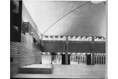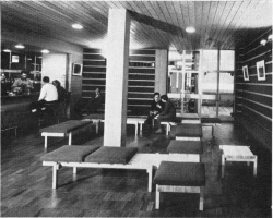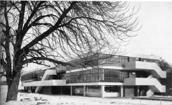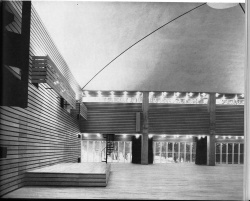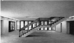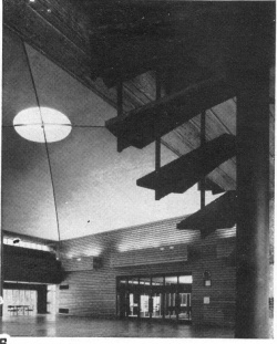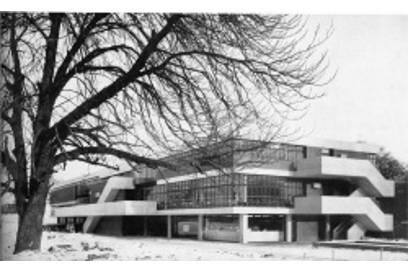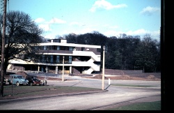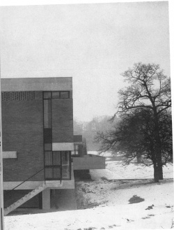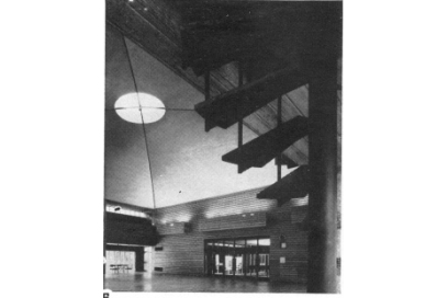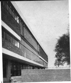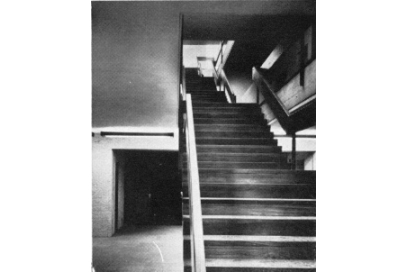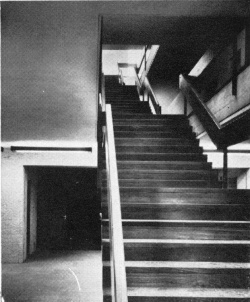 The following eight photographs appear with the permission of "The Architectural Review" 1963 v133. The building was featured in 1963 with descriptions of the materials and floor plans. The Architects were Stillman and Eastwick-Field. The beautiful, airy, open pine staircase was boxed in many years later for reasons of Health & Safety, making the light, bright interior darker and boxier, but it should be restored to its least some of its early glory during the planned ground-floor refurbishment of 2012-2013. But who authorised the light pine panelling of the Ballroom to be painted black?