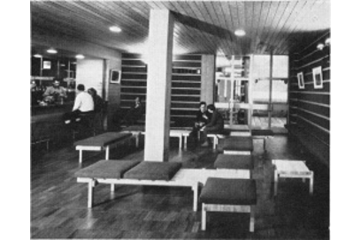 Photos below: The Ballroom and below right The Lounge in 1962 by John Samuel. All that beautiful pine!