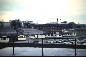Photo: Panorama of Huts, Tawney Building and the Chancellor's Building under Construction. Graham Fisher (1965)