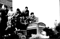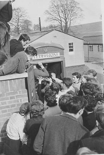 Photo left: by Joe Batt (1962)- students in and on the phone box!