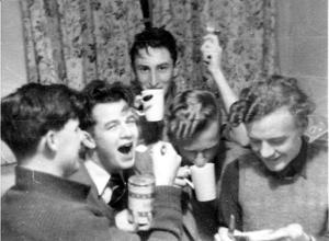 "Another pioneer who had served during the war was Josh Reynolds (1954). I believe that he had been a major in the Burma Army. Apparently, he still had a revolver with him at Keele. I was told that he would use cotton thread to attach ping pong balls to the branches of a tree outside his room window and use them for target practice after dark. Or was someone pulling my leg? Presumably, Fred Gallimore (1954) had been in the War too. Fred was married and lived off-campus. He was the first President of the Union. Ray Garner (1955), another mature student, left school at 14 with no qualifications and worked as a pot boy in the Potteries before the War. Having been wounded during his army service, he decided to become a doctor and came to Keele to read a science degree. I think there were special arrangements for ex-servicemen wishing to study in the immediate post-War years. That gave him the necessary academic qualifications to obtain a place in a London medical school but he had also used up his entitlement to state funding. So he worked his way through medical school, moonlighting between all the demands of medicine and earning his living. At Keele, he constructed a brick wall as his customized bedside table. Once, he invited me to coffee and served lukewarm "Milo" from a teapot. Quite a character and a successful medic."