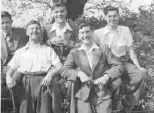 "I did the army and Keele sequence back to front. I was so attracted by the opportunity to enter the new university college at Keele that I asked for deferral of my army service on receiving from Keele acceptance of my application, a decision that, in retrospect, might not have served me optimally. The national service experience began in oft-mentioned style. All I recall of my first 24 hours therein was the unprecedented haircut and, at 0530h, the bawling voice and charging boots accompanied by the bellowed words "Get your feet on the DECK!" It was the first time I had wanted my Mum since I was in hospital for 5 months at the age of 6! I soothed myself with the thought that it would all be over in six weeks' time. In fact, this was optimistic. Horwood Hut 31 residentsFor reasons never explained, it soon emerged that the group in which I found myself was to undertake a further 4 weeks' commando training, also in Lichfield. So it was to be 10 weeks with no leave allowed in Wellington Barracks. Yet, apart perhaps from the first few days, I never did get around to hating national service. Perhaps this was helped along by the fact that the first crack in the army's apparently seamless rules and traditions came when, in my 7th or 8th week, I was allowed to be out of the barracks for 12 hours in order to attend the end of year Students' Union Ball at Keele (in full army uniform, of course). This was a chance to see Maryon Lloyd (1955), whom I later married. Afterwards I managed to get back into my barracks' bed at about 3am the following morning largely because of a slice of luck in the form of the driver of a car who gave me a lift for most of the way on the empty roads of the witching hours. It got better, too.