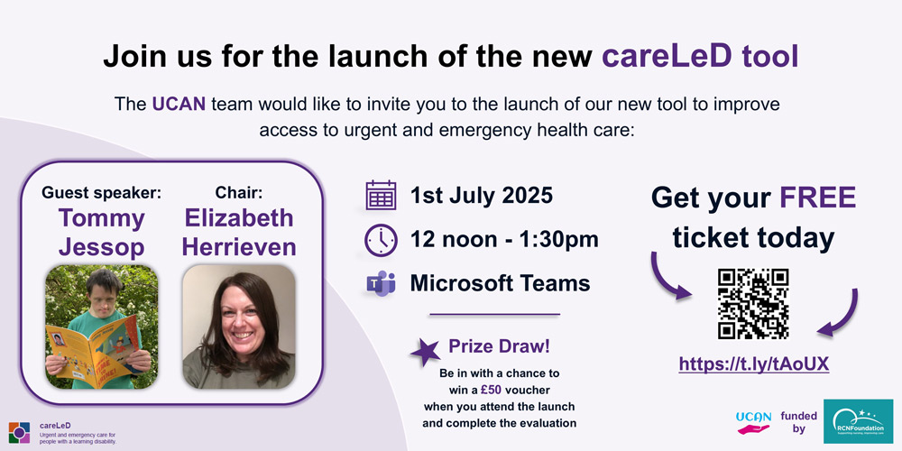 The aim of the UCAN project is to co-design a tool to assist people with lived experience of a learning disability to access urgent and emergency care in times of ill health.